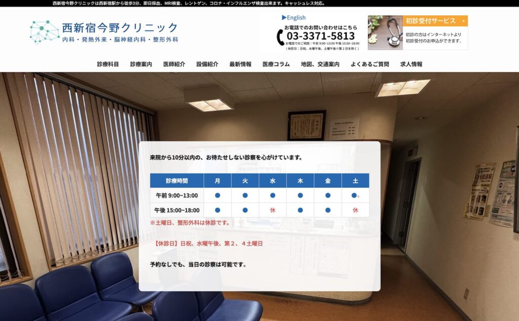 西新宿今野クリニック様のホームページを制作させていただきました。 -